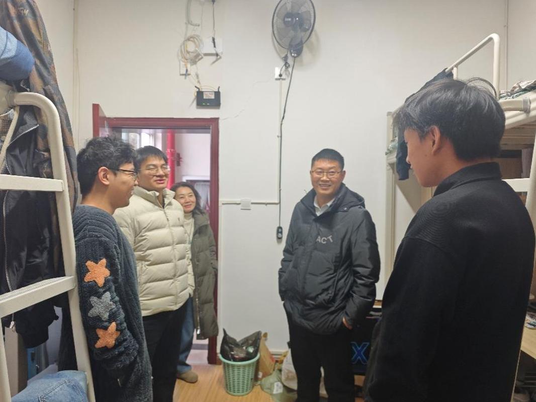 为将安全教育落到实处、抓在细处,1月4日,研究生院领导、辅导员等老师一同深入研究生宿舍,开展安全排查与关心慰问。走访中,老师们认真检查宿舍用电、用水等安全情况,叮嘱留校研究生严格遵守宿舍管理规定,切实增强安全意识。同时,还细致了解研究生们的科研进展、假期安排与生活需求,传递温暖与关怀。